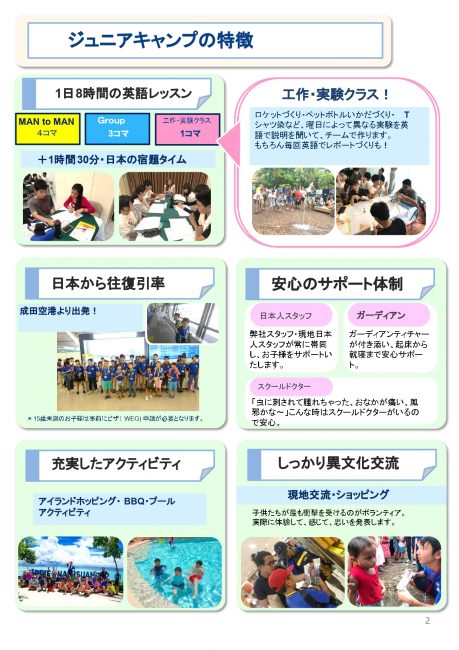 週末には、アイランドホッピングやビーチ・プールアクティビティ、ボランティア活動、ショッピングなど、英語を使いながら楽しめるアクティビティが予定されています。