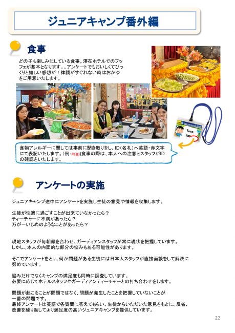 ジュニアキャンプ中の生徒のケアについて