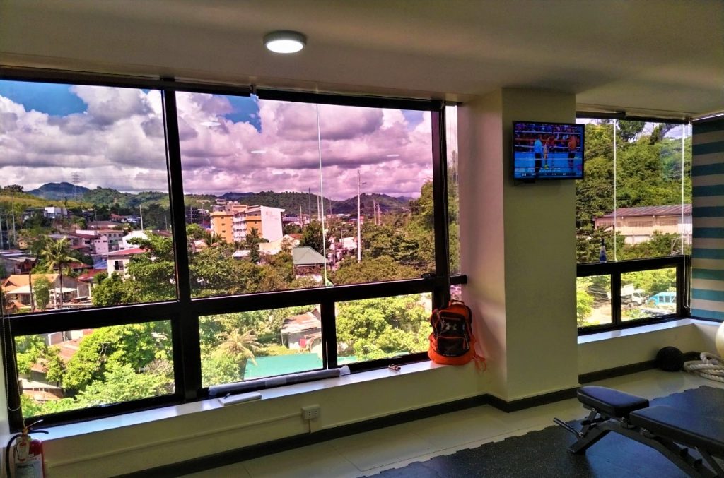 ガラス張りの窓からはセブの景色を眺められ、トレーニングとの相乗効果でよい気分転換ができそうです!
